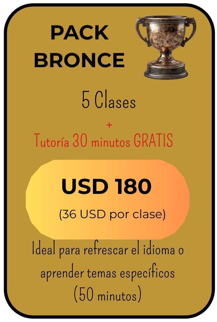 La primera clase durará entre 30 y 40 minutos aproximadamente. Nos permitirá conocernos, saber de tus intereses y conocer sobre tus necesidades y tu nivel de conocimiento de español. A partir de esa información podré elaborar un plan personalizado para ti.